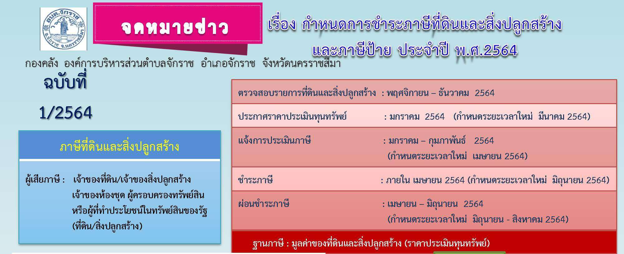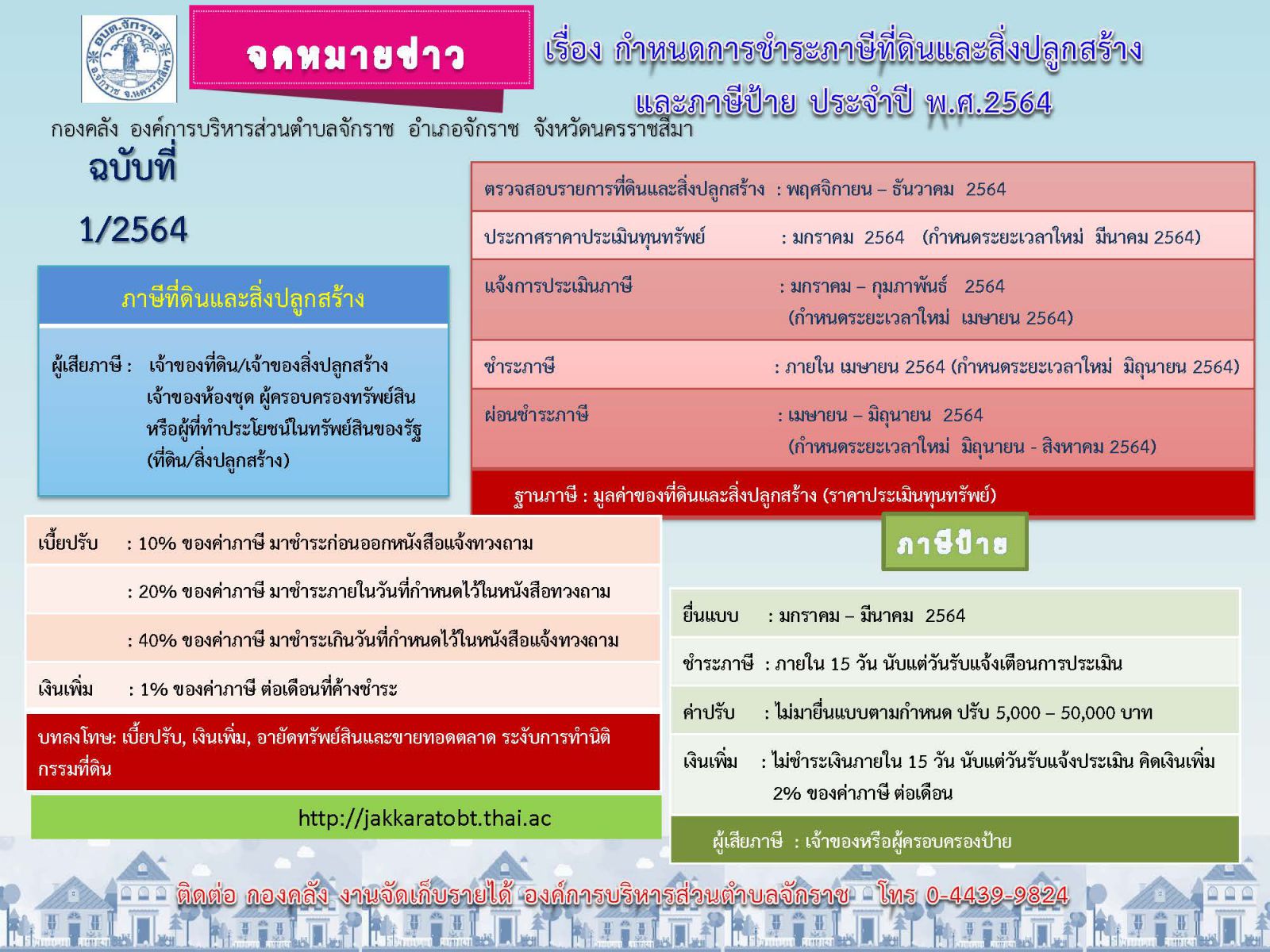 การกำหนดการชำระภาษีที่ดินและสิ่งปลูกสร้างและภาษีป้าย ประจำปีงบประมาณ พ.ศ. 2564