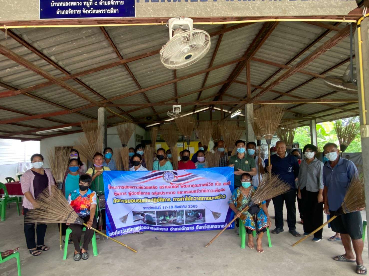 โครงการการสงเคราะห์ช่วยเหลือ สร้างอาชีพ พัฒนาคุณภาพชีวิต เด็ก สตรี ผู้พิการ ผู้ด้อยโอกาส และครอบครัวที่มีภาวะพึ่งพิง กิจกรรม อบรมเชิงปฏิบัติการ การทำไม้กวาดทางมะพร้าว ระหว่างวันที่ 17 -19 สิงหาคม 2565