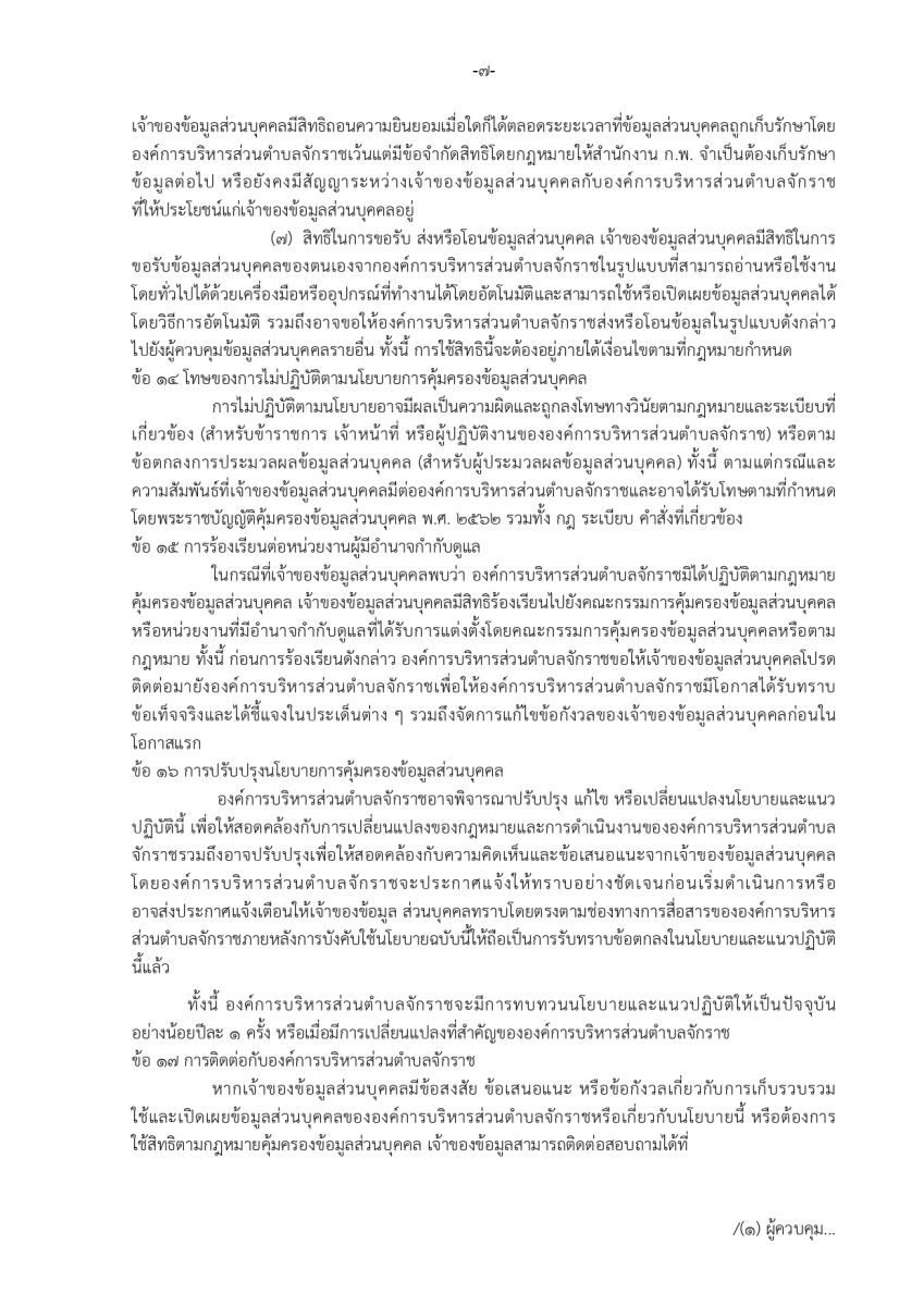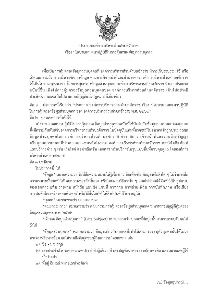 นโยบายคุ้มครองข้อมูลส่วนบุคคล