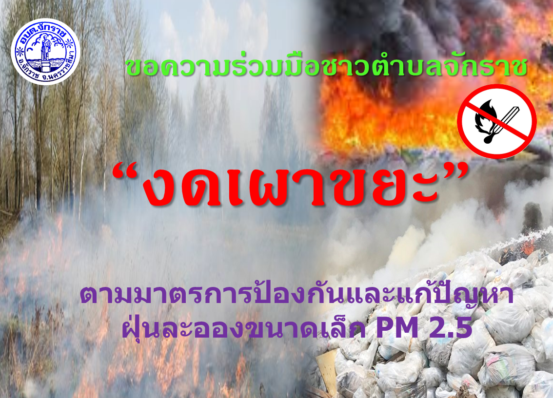 ประกาศ เรื่อง ขอความร่วมมือชาวตำบลจักราช งดเผาขยะ ตามมาตรการป้องกันและแก้ปัญหา ฝุ่นละอองขนาดเล็ก PM 2.5