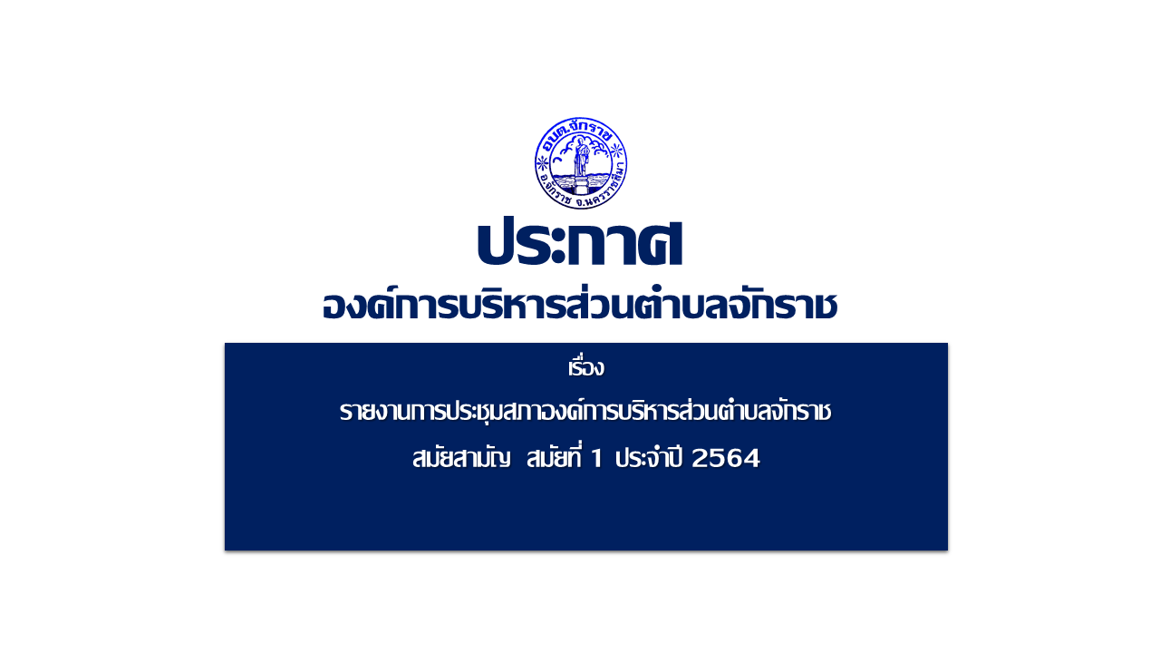 ประกาศ เรื่อง รายงานการประชุมสภาองค์การบริหารส่วนตำบลจักราช สมัยสามัญสมัยที่ 1 ประจำปี 2564