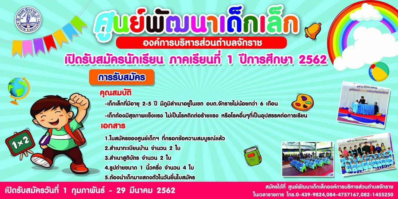 รับสมัครเด็กนักเรียน 2-5 ปี ศูนย์พัฒนาเด็กเล็กองค์การบริหารส่วนตำบลจักราช