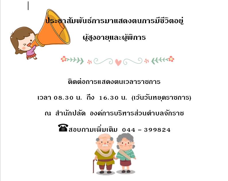 ประชาสัมพันธ์ การมาแสดงตนการมีชีวิตอยู่ของผู้สูงอายุและผู้พิการ