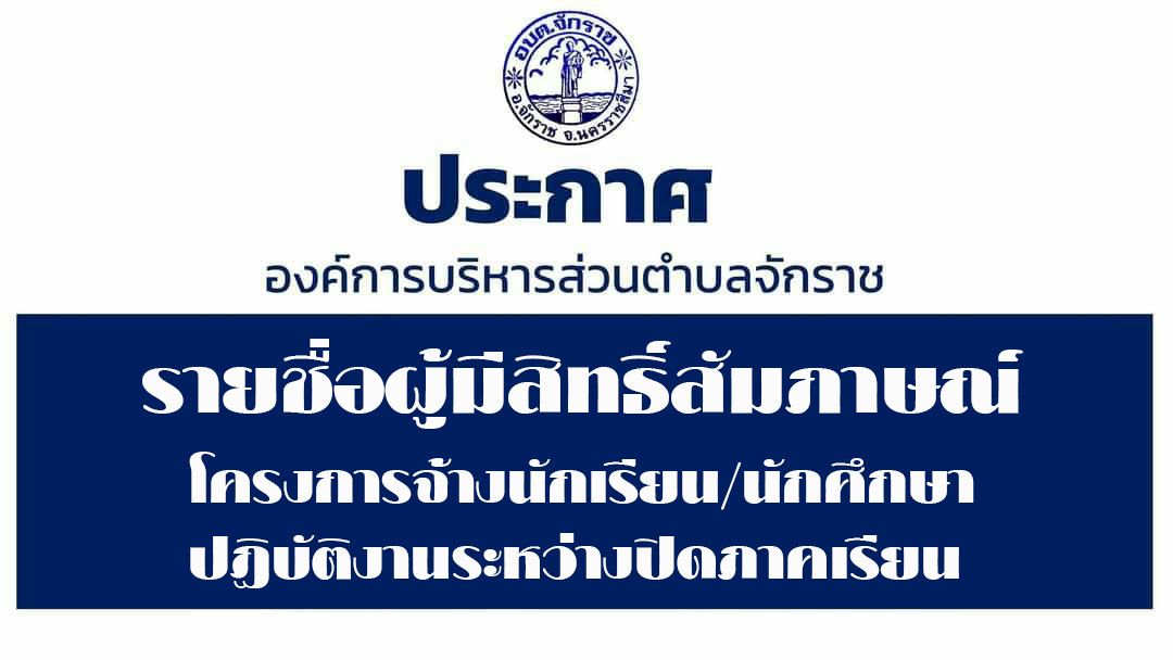 ประกาศรายชื่อผู้มีสิทธิ์สัมภาษณ์ โครงการจ้างนักเรียน/นักศึกษา ปฏิบัติงานระหว่างปิดภาคเรียน