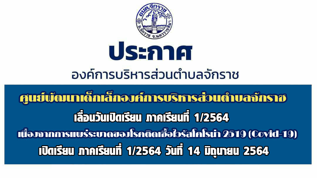 ประกาศเลื่อนการเปิดภาคเรียนที่ 1/2564 ศูนย์พัฒนาเด็กเล็ก อบต.จักราช
