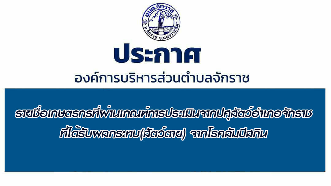 ประกาศรายชื่อเกษตรกรที่ผ่านเกณฑ์ กรณีได้รับผลกระทบจากโรคลัมปีสกิน (สัตว์ตาย)