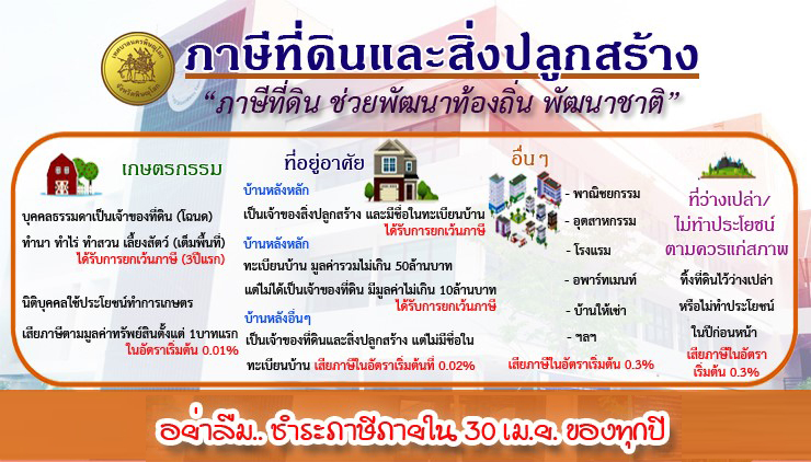 ประชาสัมพันธ์หลักเกณฑ์ อัตราการจัดเก็บภาษีที่ดินและสิ่งปลูกสร้าง